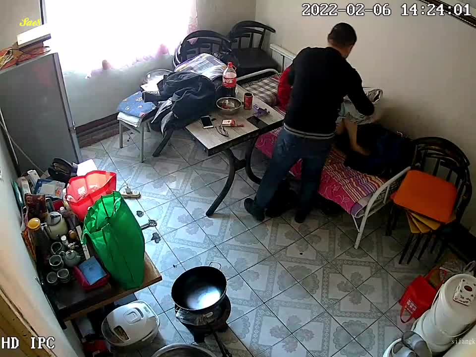 摄像头泄密包工头老李和厨房煮饭阿姨大白天在工棚宿舍啪啪。