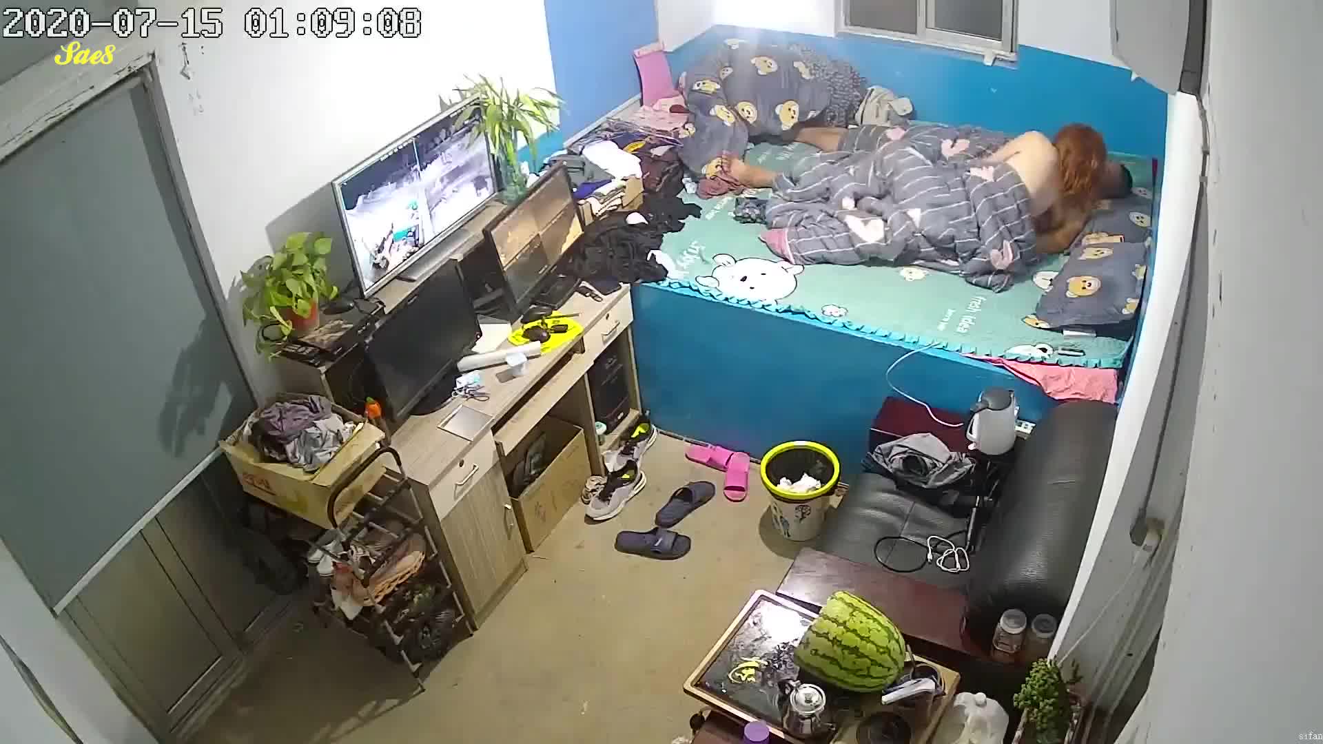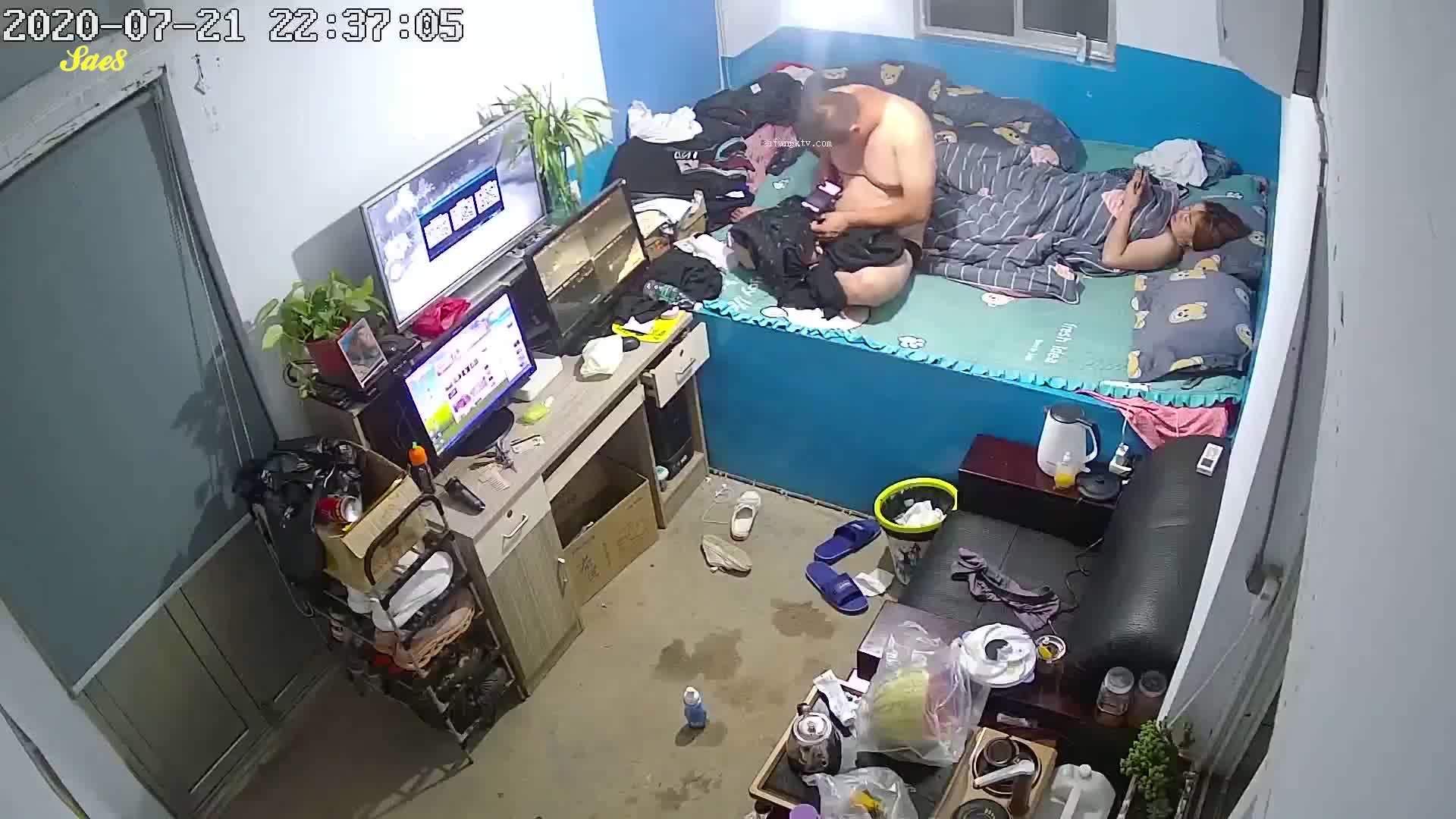 摄像头泄密东北门卫大哥值班室深夜幽会老情人。